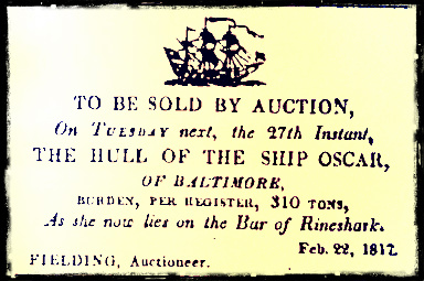 34. The Oscar, 16 February 1817. The Oscar, Meyers, from Baltimore for this port, was driven on shore in Tramore Bay 17th inst. and it was feared would be wrecked. Cargo expected to be saved.62